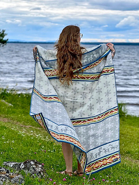 Aika - Wolldecke - weiß-hellgrau- 130 x 180 cm