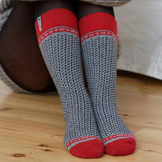Skaftö grå - graue / rote Kniestrümpfe