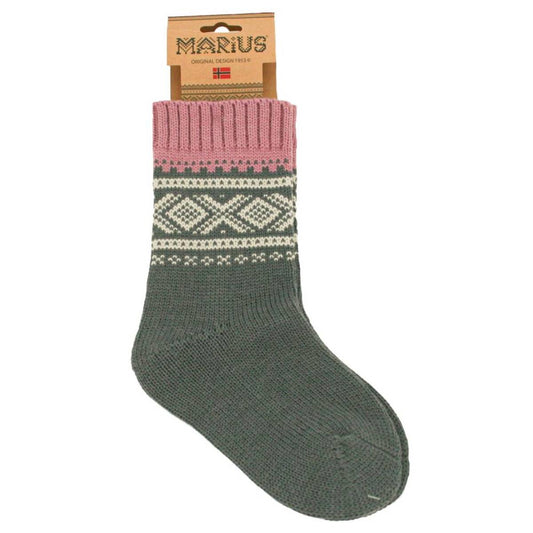 Wollsocken mit norwegischem Marius-Muster - Pink / Weiß / Grau
