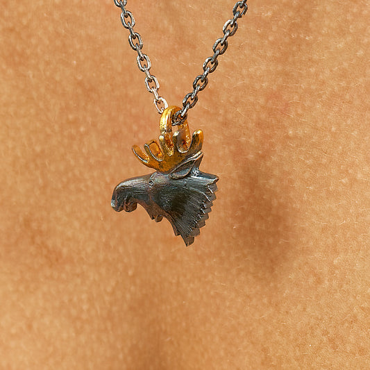 Classic moose head - 21 x 22 mm - with 50 cm silver chain