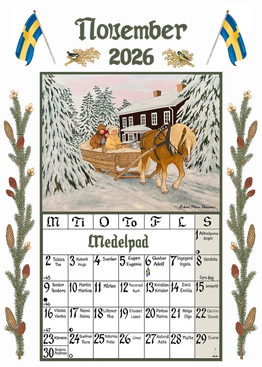 Sverigealmanackan - Wall Calendar 2025 - 30 x 42 cm - Swallings