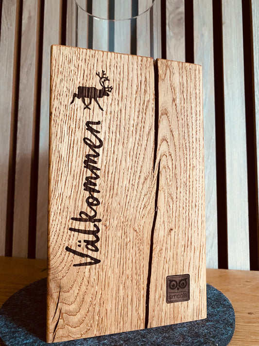 Lantern holder with glass - Välkommen with reindeer engraving - 20 cm - handmade