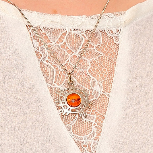 Aurinko with amber - sun - Sami pendant - 25 mm - with silver chain 42 cm