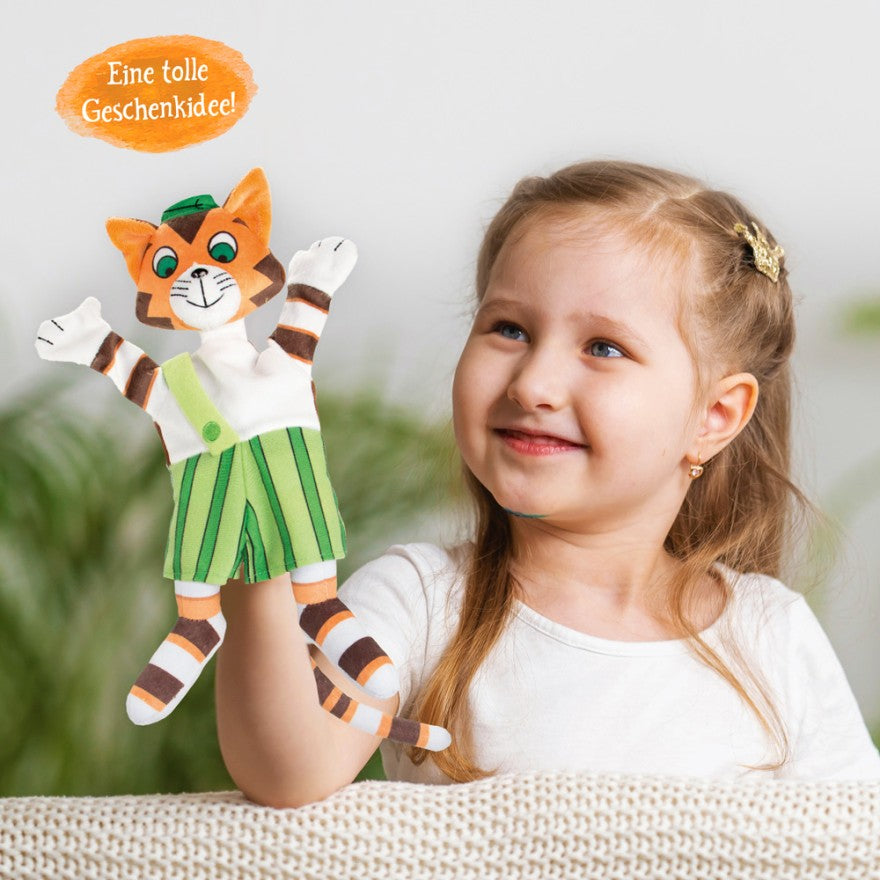 With this cute plush hand puppet, Pettersson & Findus fans can bring the cheeky cat to life at any time and reenact his imaginative adventures, invent new ones of their own - or simply cuddle him.