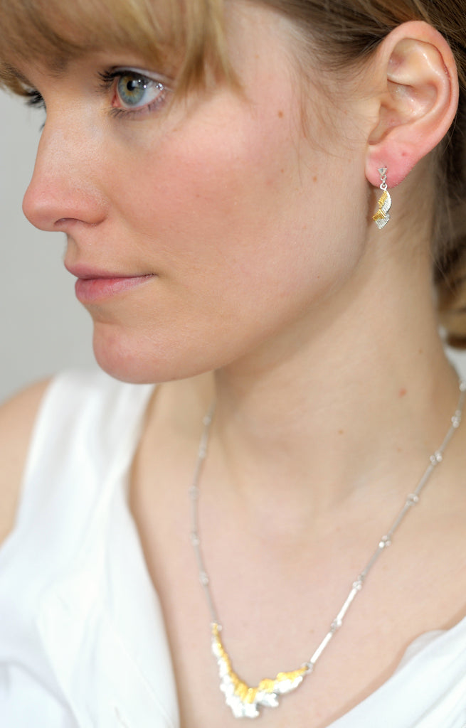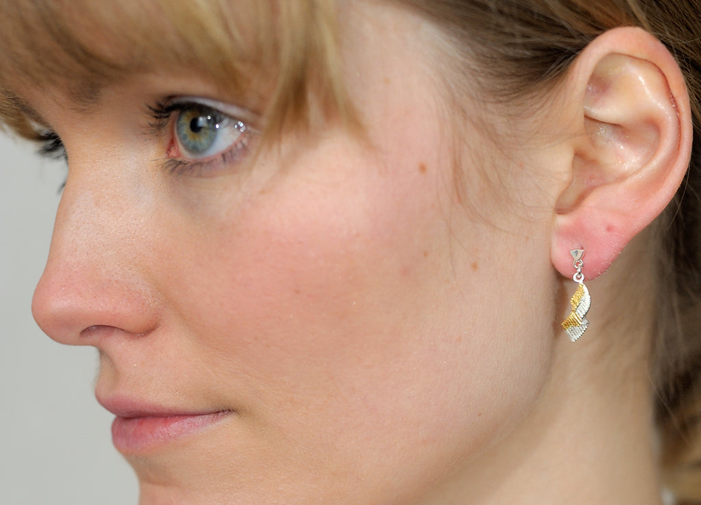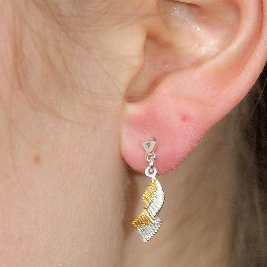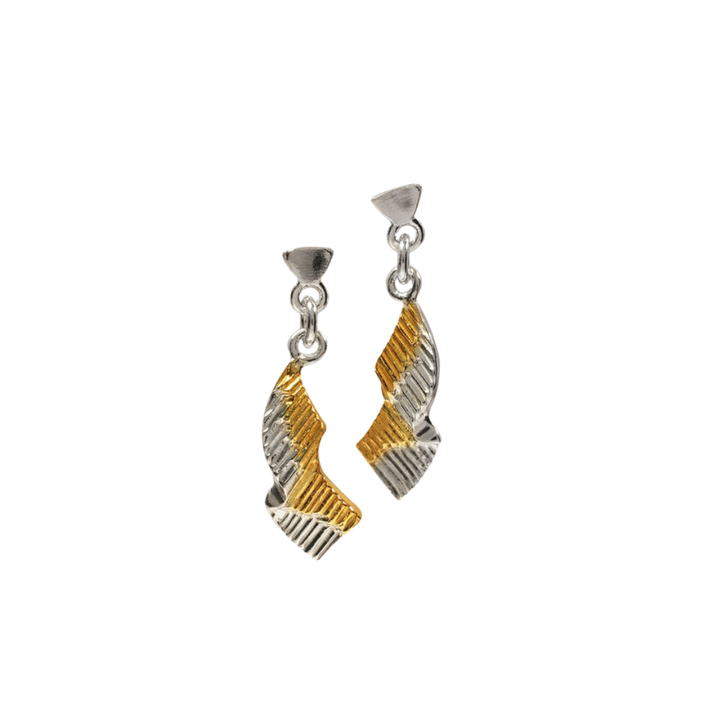 The two earrings are each 20 mm long, made of 925 silver and partially gold-plated. Gift-wrapped.