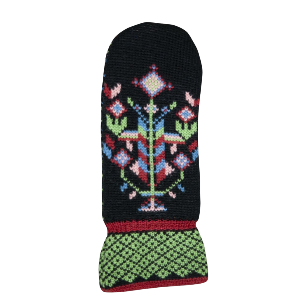 Farbenfroher Fäustling mit nordischem Muster und Fleecefutter.