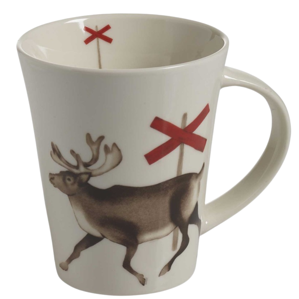 Mug with reindeer and hiking trail markings on the outside and inside.