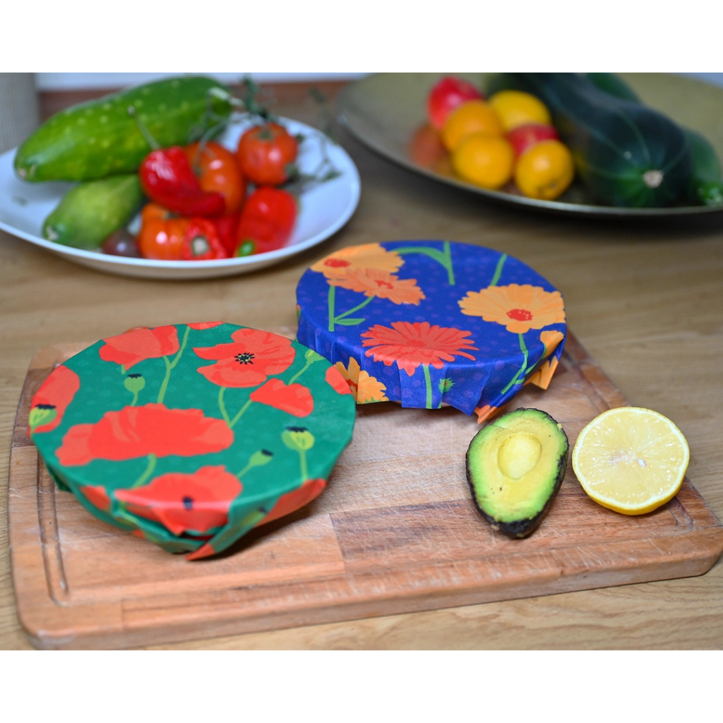 Das Bienenwachstuch ermöglicht es, Deine Lebensmittel auf natürliche und plastikfreie Weise aufzubewahren. Es erfüllt die gleiche Funktion wie Frischhaltefolie und haftet genauso gut an Lebensmitteln oder Geschirr. Wickeln Sie das Tuch um Käse, Gemüse, Obst oder einen Teller mit Essen und erwärmen Sie das Tuch mit Ihren Händen, damit es sich um den Gegenstand formt. Die antibakteriellen Eigenschaften des Bienenwachses halten die Lebensmittel frisch und schön.