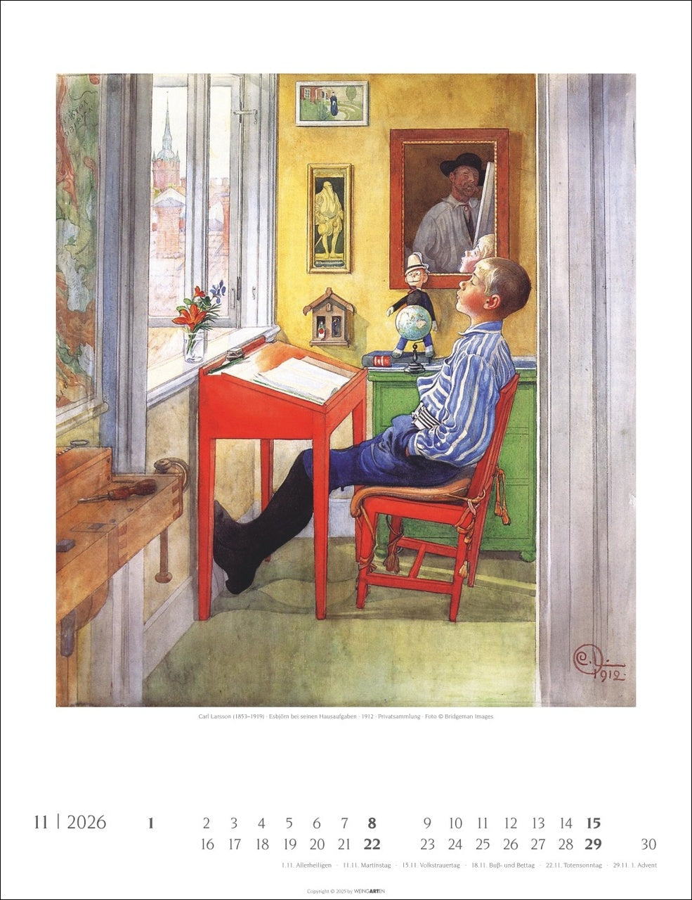 Carl Larsson - Wandkalender 2026 - 31 x 39 cm - Kunstverlag Weingarten