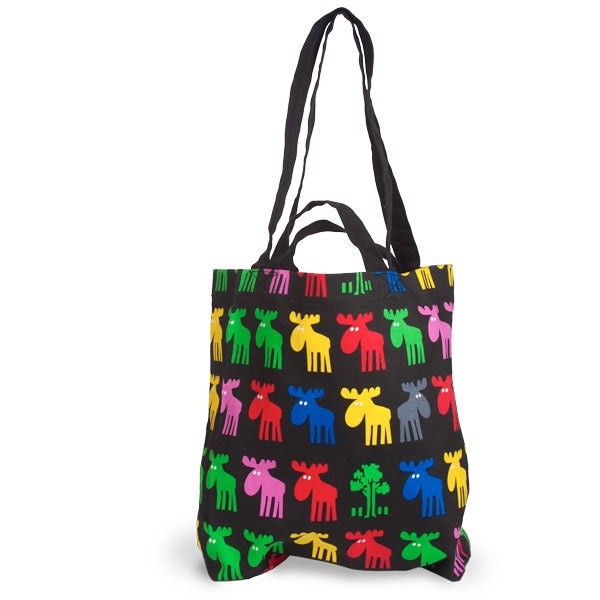 Elch Kunterbunt - Baumwolltasche - Schwarz mit bunten Elchen