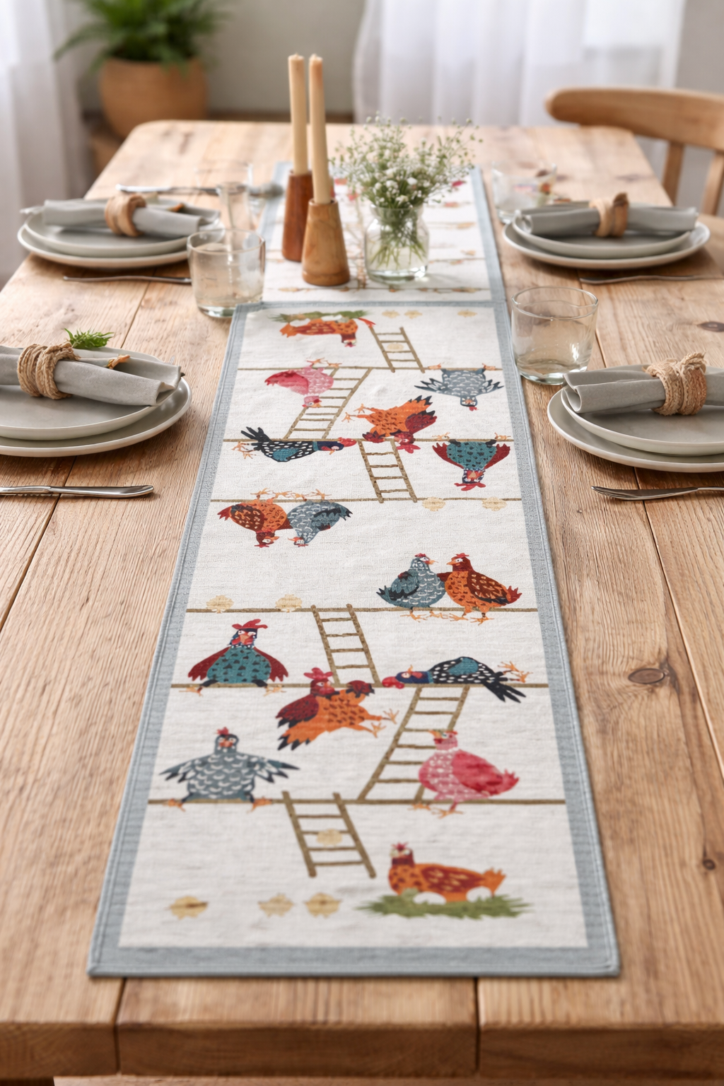 Hönshus - Tischläufer mit fröhlichem Hühnermotiv