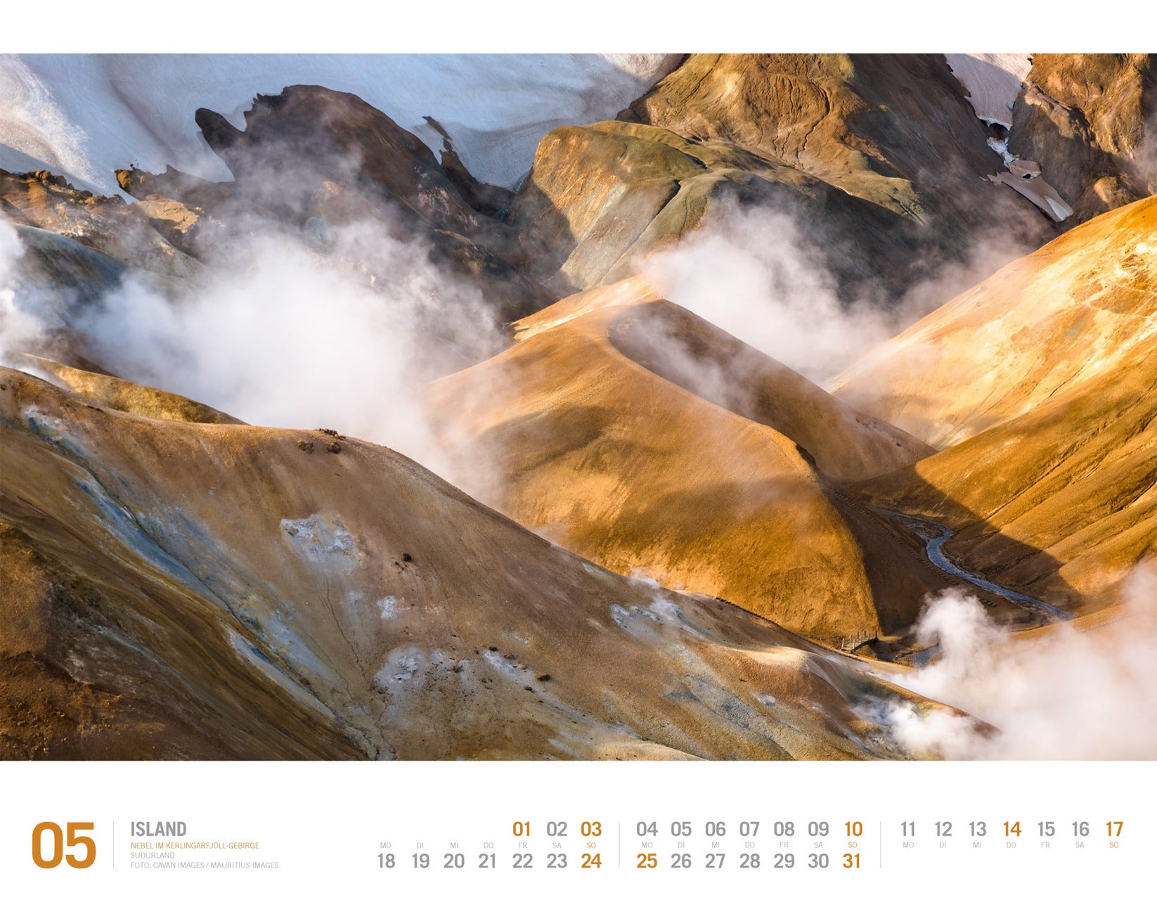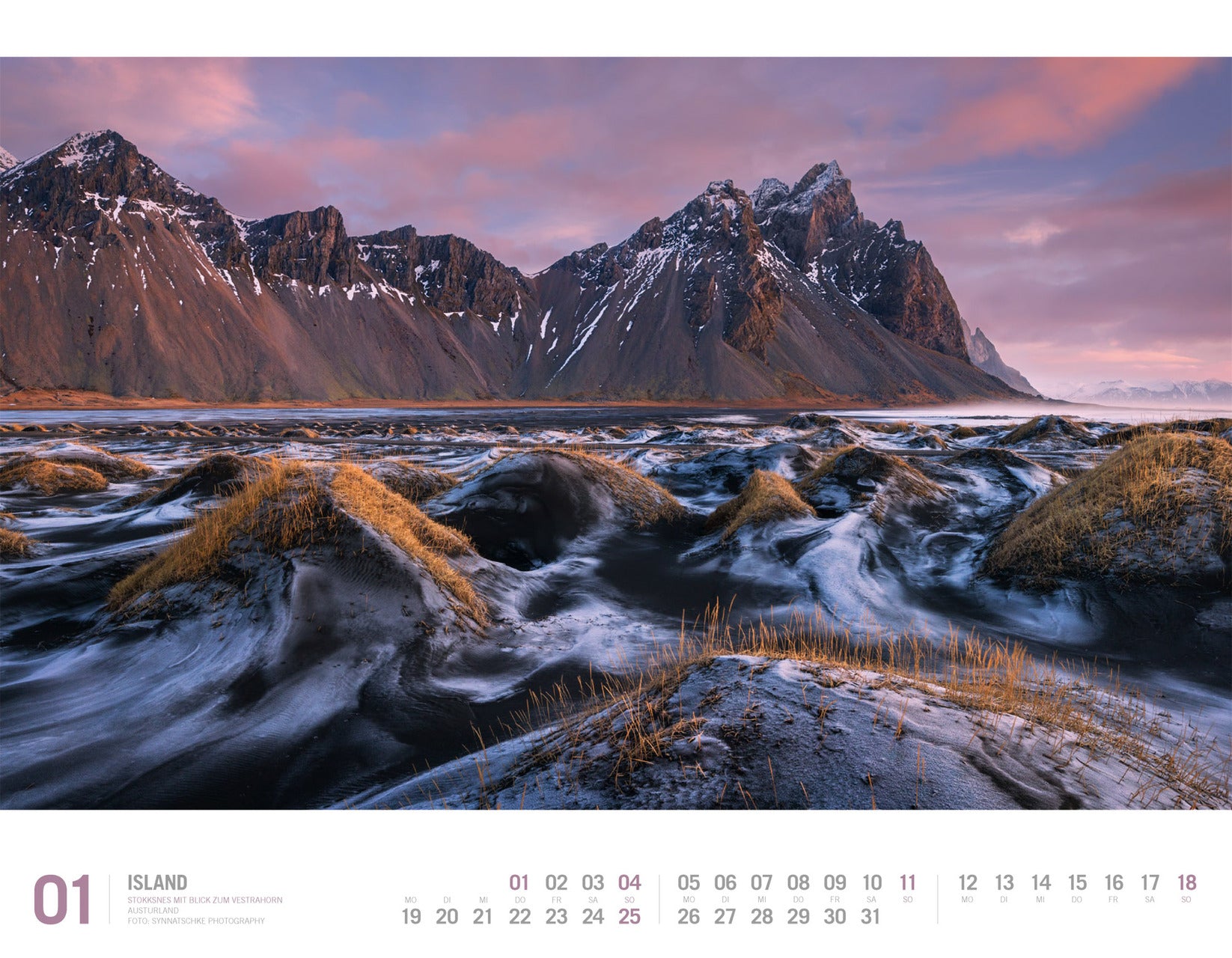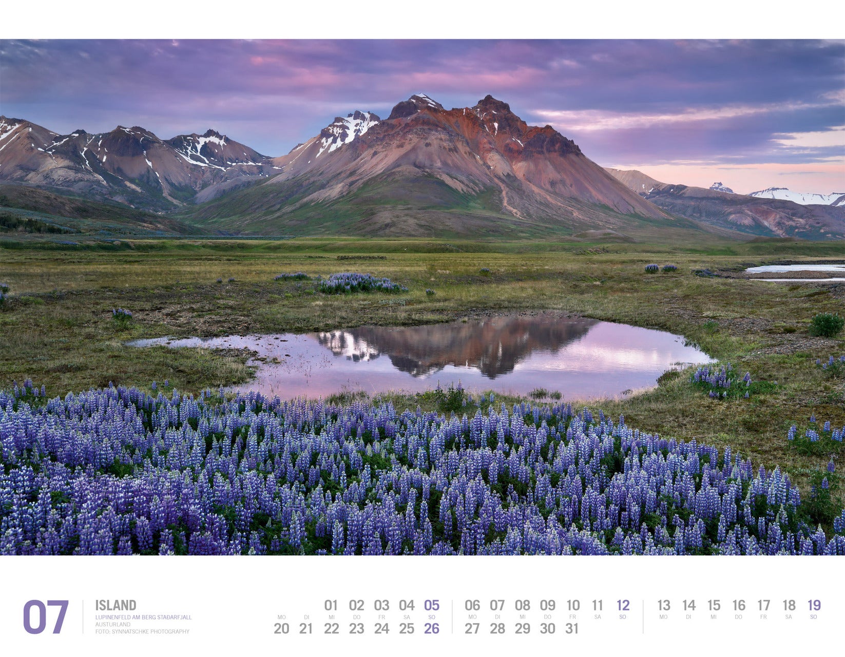 14 Kalenderblätter mit 12 Island-Motiven im XXL-Format 54 x 42 cm. Spiralbindung.