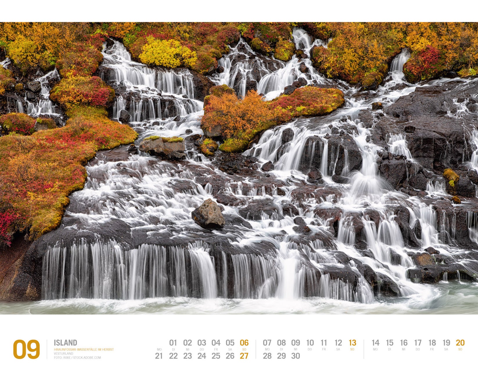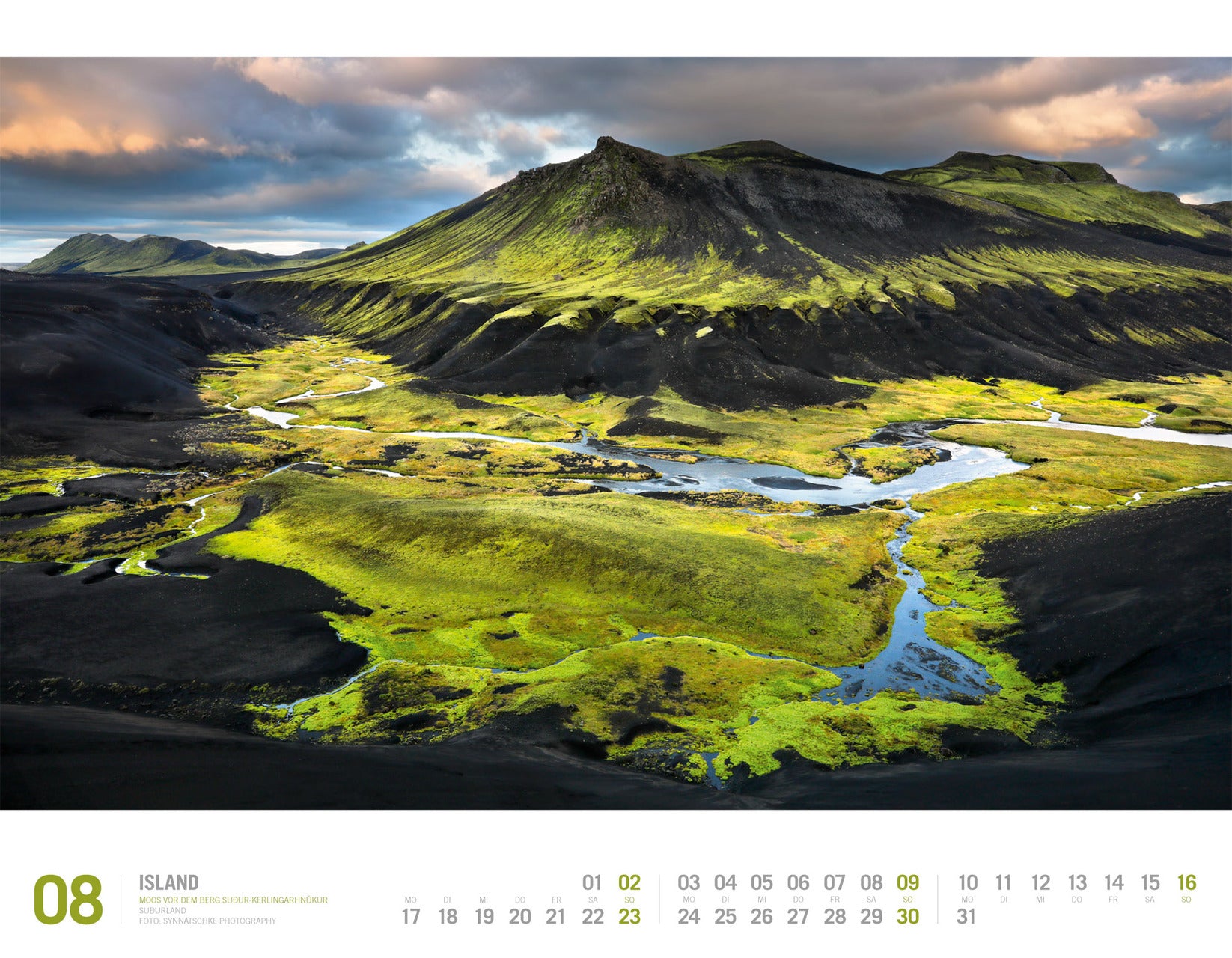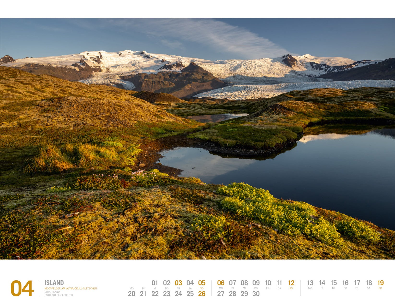 14 Kalenderblätter mit 12 Island-Motiven im XXL-Format 54 x 42 cm. Spiralbindung.