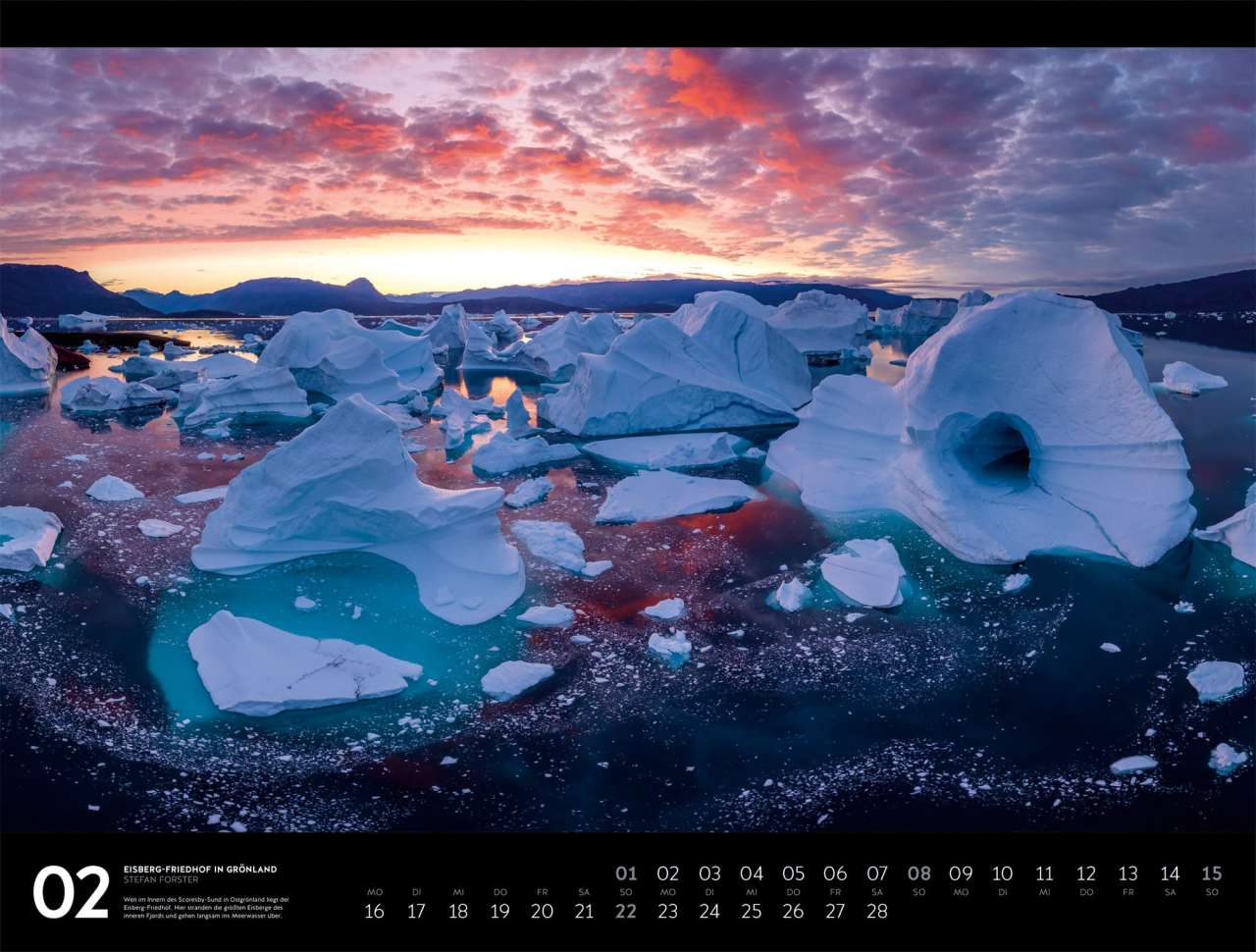 Erlebe die Weite des isländischen Hochlandes, Grönlands majestätische Eisberge und die gewaltigen Steilküsten der Färöer in einem geradezu filmreifen Kalender-Epos.