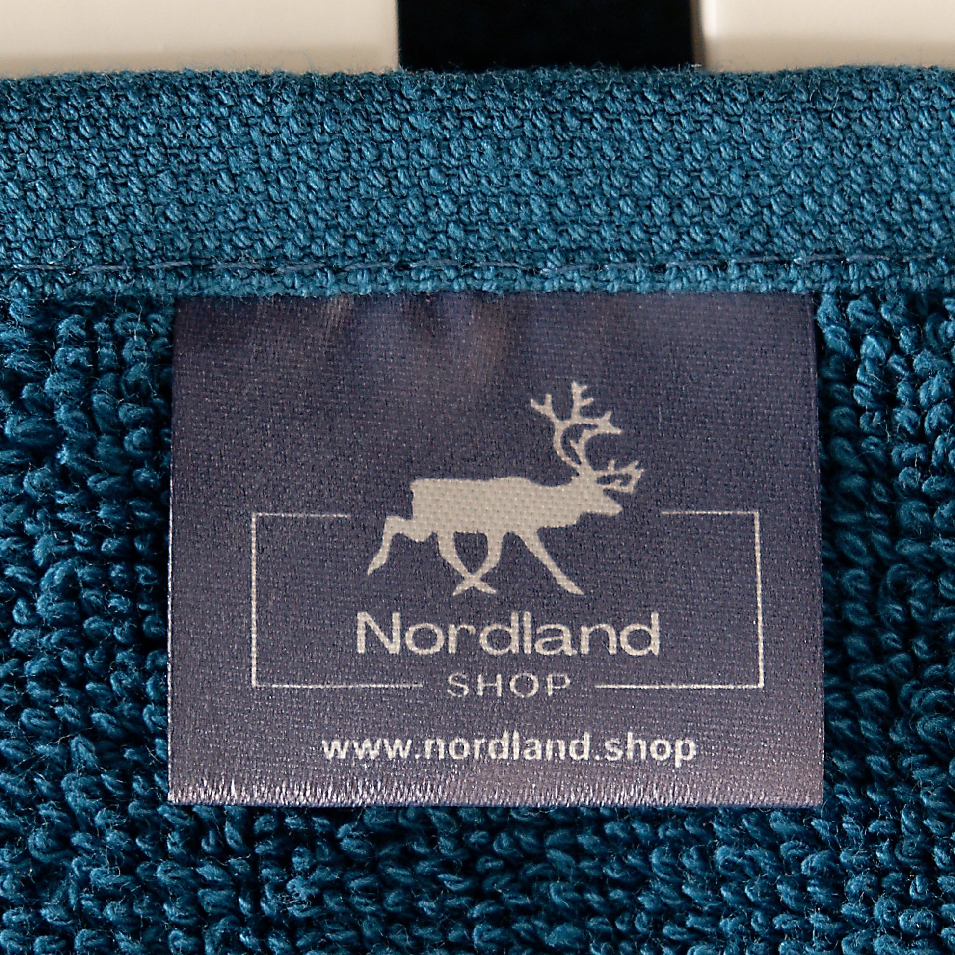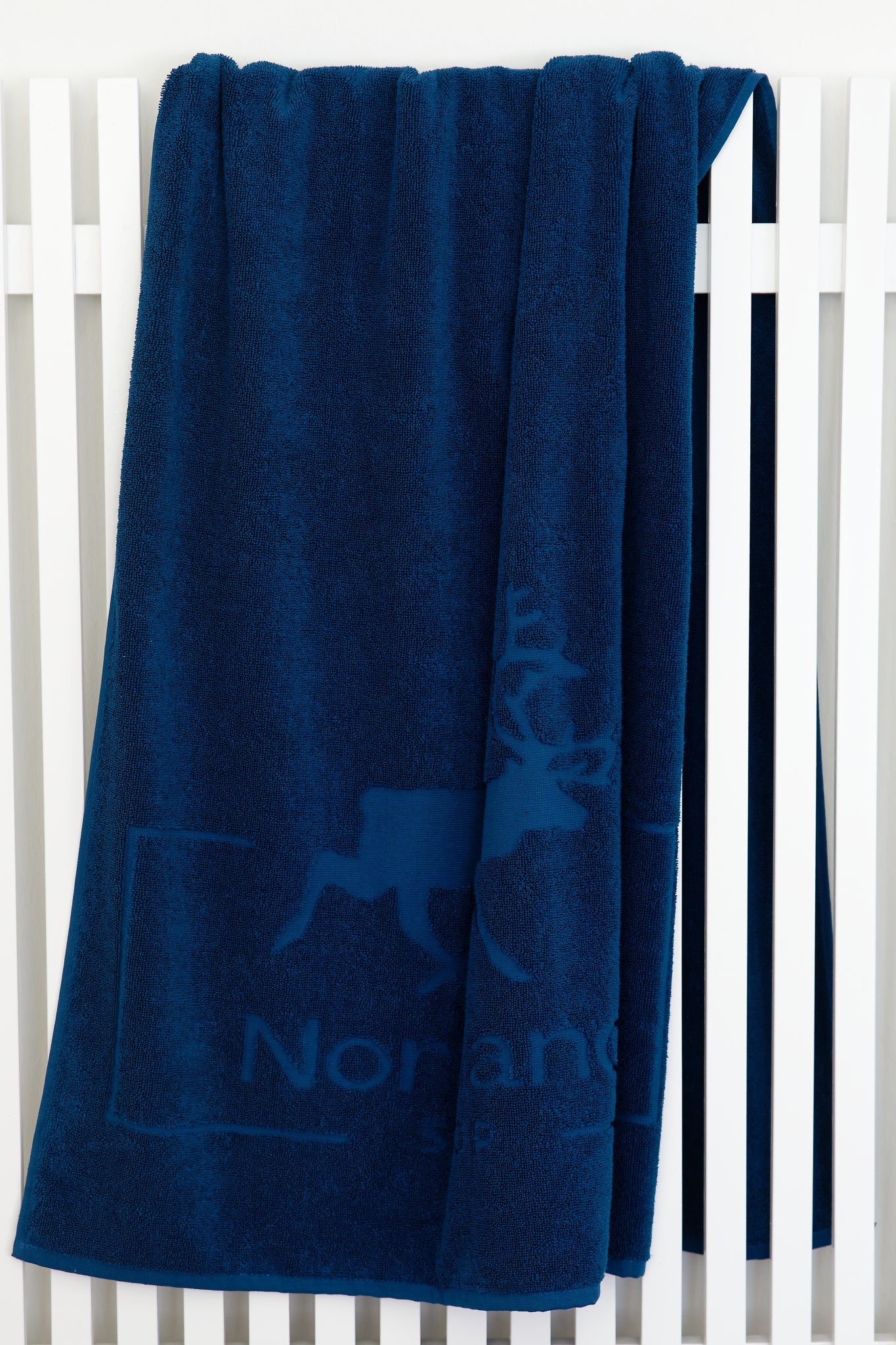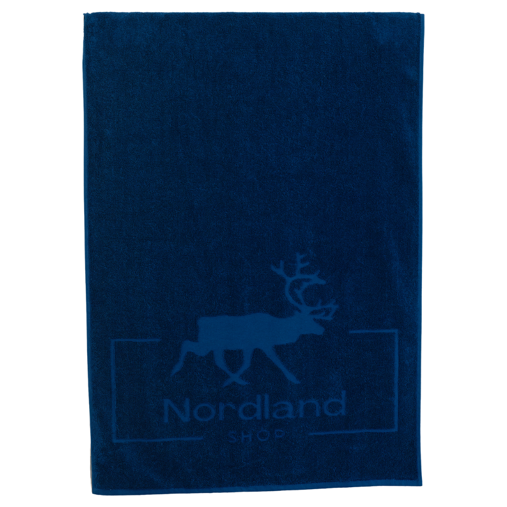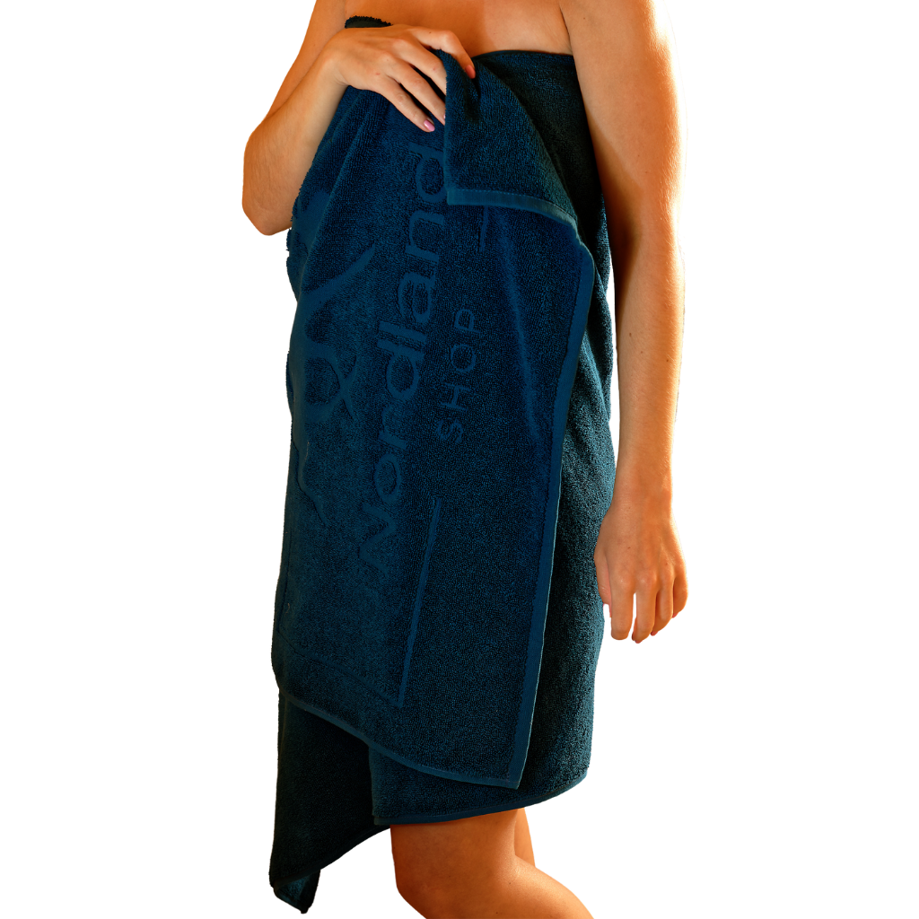 Royalblaues, hochwertiges Zwirnfrottee Bade- und Saunatuch mit dezenter Hoch-Tief-Einwebung (Nordland.Shop Logo).